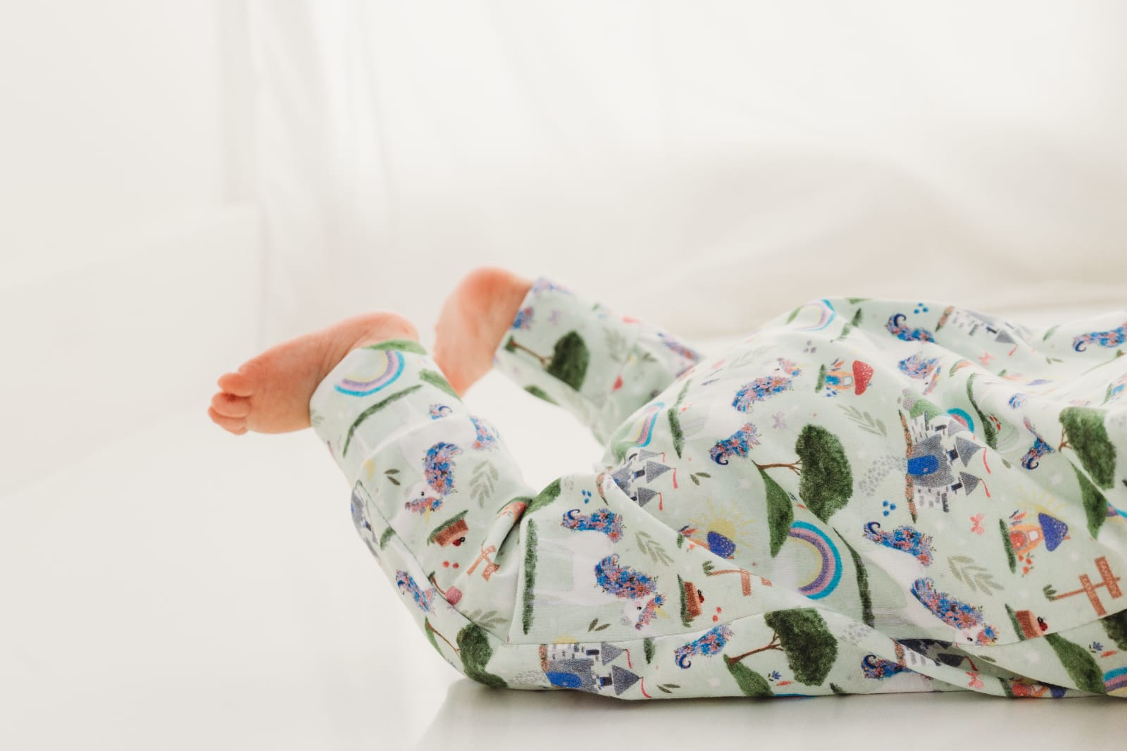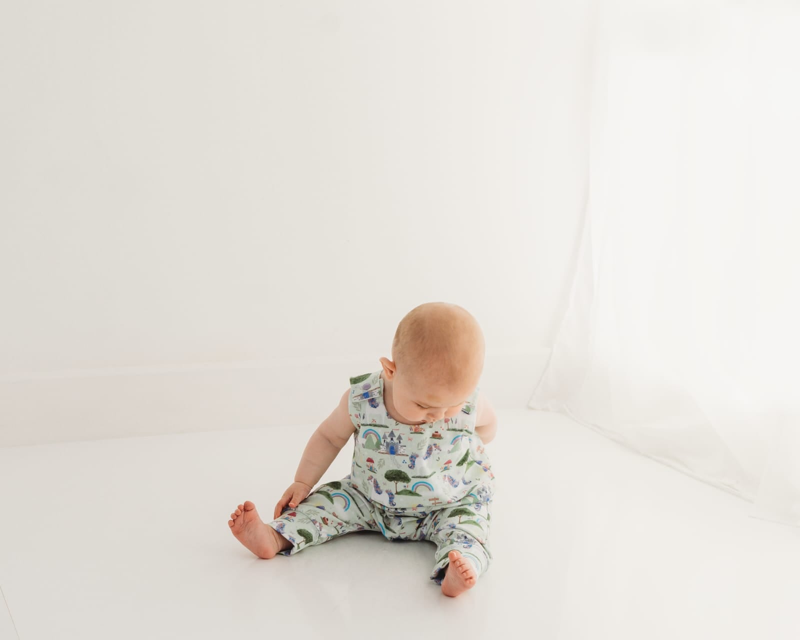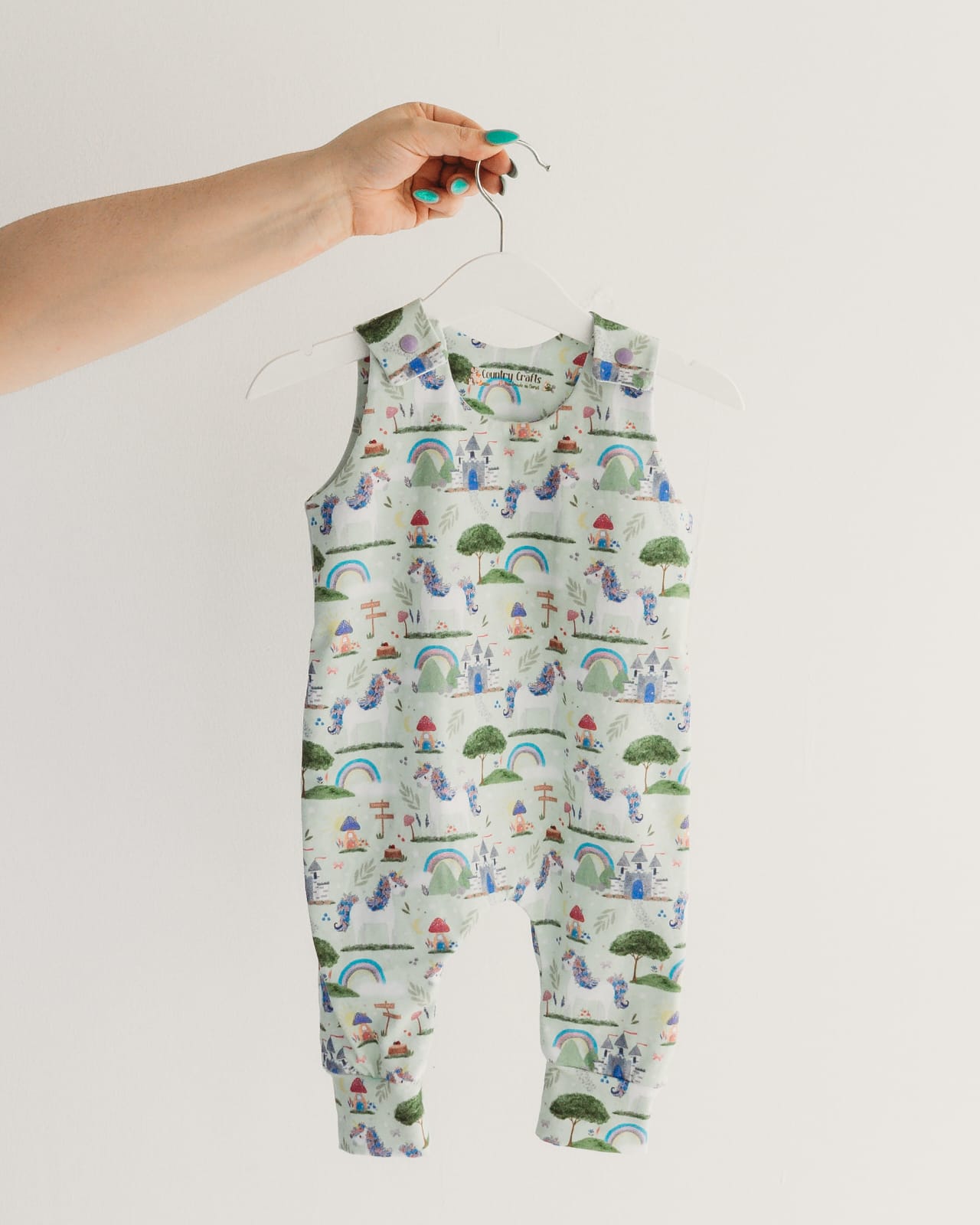 Rompers have snap fasting at the shoulder which provided an easy way to pull the romper down for a quick nappy change.